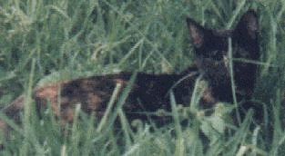 Smokey Bandit, my little orphan cat and shaddow until her unfortunate disapearance. She was so afraid of thunder. I hope whomever took her loves her as much as I did.