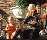 Byron, Dean and the dogs in the kitchen, June 2000.